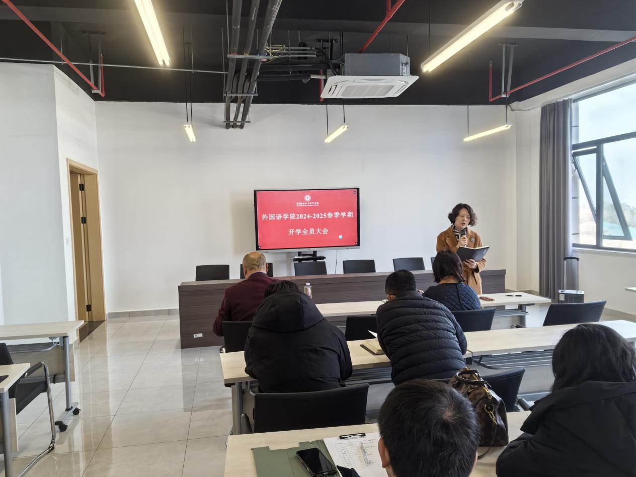 新学期新气象,william英国中文于2月26日下午在天府校区A5栋5003会议室召开了2024-2025春季学期开学全员大会,会议由william英国中文院长郑丽主持,领导班子成员、全体教职工参加会议。