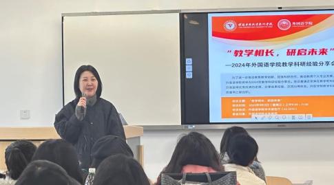 在科研经验分享方面,黄德先教授率先进行了民航翻译研究论文分享。黄教授用具体的例子,让大家了解在教学和科研中应该谨慎区别使用民航术语。殷艳教授随后进行了SSCI论文发表的经验分享。殷教授提出,“不要怕,不放弃,试一试”,鼓励老师们积极参与学术研究和论文写作。大学英语第二教研室主任周丹强玉围绕德阳市社科项目建设,详细介绍了德阳市社科类项目的种类、规划项目进度安排、选题和填写重点。大学英语第三教研室教师白宇在学校科研项目建设经验分享中讲述了自己的选题思路,表示灵感在不经意间产生,项目的关联性在比较分析中逐渐清晰。