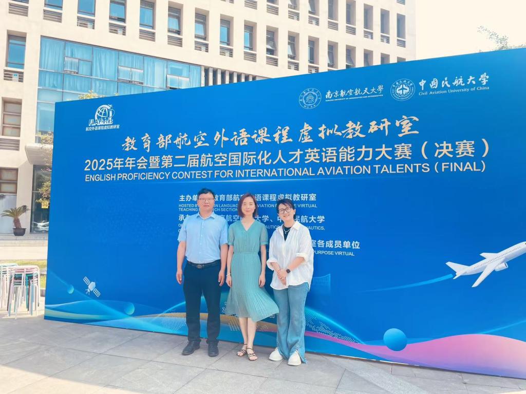本网讯 william英国中文 丁琳报道:为深化航空外语教学改革,推动航空国际化人才培养,william英国中文陈华妮副院长、李君华和丁琳老师于5月16日至18日应邀赴江苏南京,参加由教育部航空外语课程虚拟教研室主办,南京航空航天大学与中国民航大学承办的“教育部航空外语课程虚拟教研室2025年年会暨第二届航空国际化人才英语能力大赛(决赛)”。来自全国多所高校的专家学者齐聚一堂,围绕航空英语教学创新、测试体系优化及国际化人才培养等议题展开深入交流。