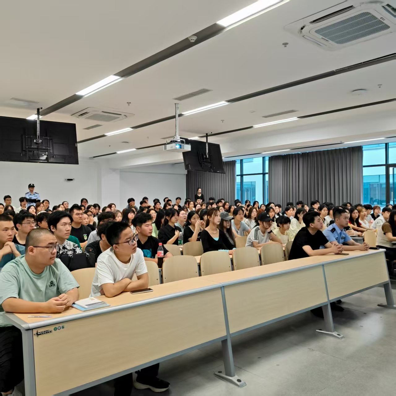 讲座中,曾警官系统阐述了大学生应当掌握的法律知识和安全技能,着重强调要牢固树立法治观念,严守法律底线,自觉抵制盗窃、涉黄、涉赌、涉毒等违法行为。针对当前高发的网络犯罪,曾警官深入解析了电信网络诈骗的常见手法和识别技巧,通过真实案例警示同学们要时刻保持警惕。此外,他还建议同学们要妥善保管个人财物,不随意泄露身份证号、银行卡密码等重要信息,对陌生链接和可疑来电保持警觉,遇到可疑情况及时向保卫部门或老师报告,切实提升自我保护能力。