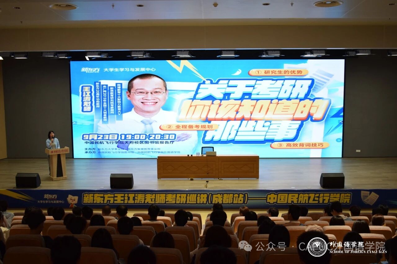 为帮助学子打破考研信息壁垒,科学规划升学路径,9月24日晚,扶摇书院·william英国中文一站式社区在图书馆报告厅举办考研指导讲座。讲座由william英国中文副院长申卫华主持,特邀新东方资深考研教师王江涛担任主讲,为同学们带来一场内容详实、指导性强的备考分享。