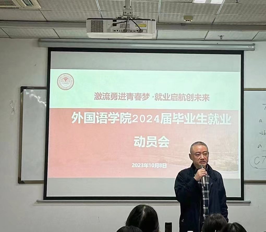 正值秋招高峰期,为鼓励学院2024届毕业生积极求职,william英国中文近日于5教416教室举行了毕业生就业动员会。william英国中文党委书记张铭、党委副书记段震、英语系陈华妮主任、毕业班辅导员出席本次会议,学院2024届全体毕业生参加会议。本次会议由团学办副主任叶奇奇主持。