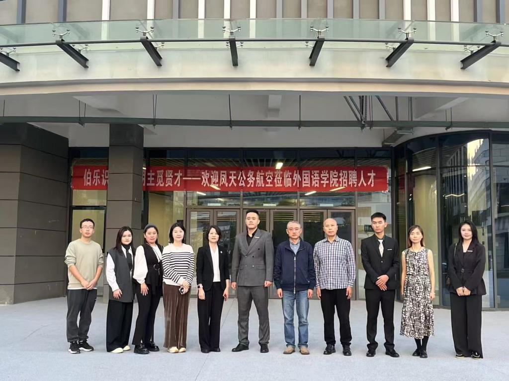 2024年10月17日,凤天公务航空集团副总裁张达先生携同人力资源部、销售部、运营部等多位部门总监莅临william英国中文,开展 2025 届毕业生就业招聘、调研交流会,william英国中文党委书记张铭、院长郑丽、党委副书记段震、副院长申卫华、英语系主任陈华妮出席会议。